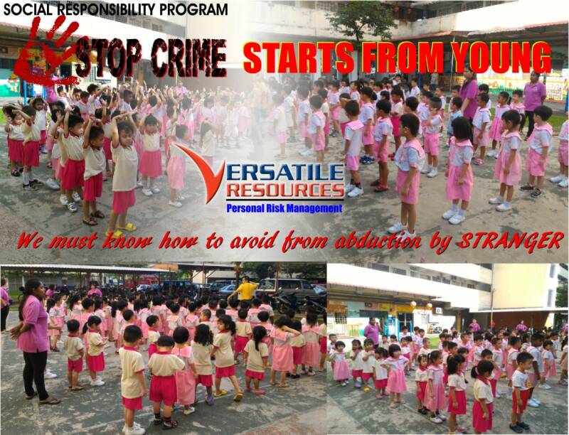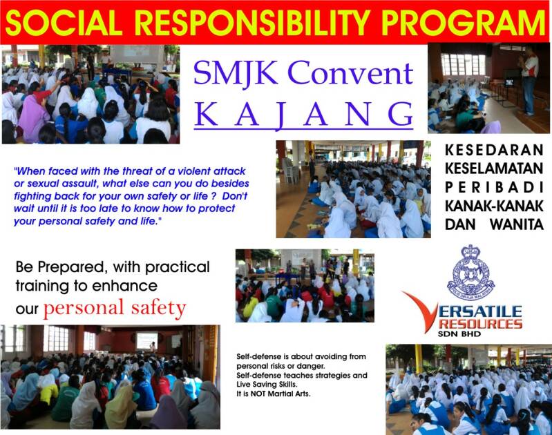 自2012年以来,我们一直在努力发展并把这项活动带给不同阶级的孩子。在PDRM,Bomba和圣约翰救护车的参与下,我们开始了“STOP CRIME” 和 “NATIONAL CHILDREN HEALTH & SAFETY AWARENESS CAMPAIGN” 以及 “ Kesedaran Keselamatan Peribadi Dan Kesihatan Kanak-Kanak Dan Wanita”等社会责任的活动,而我们的目的是提高儿童与大众的安全意识与智慧,能够有信心保卫自身的安全。